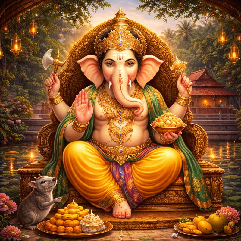 The symbol of devotion, discipline, and purity, blessing devotees with serenity.